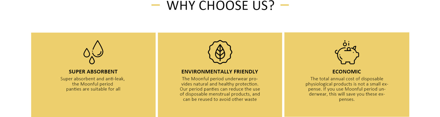 Moonful aims to provide consumers with comfortable and Eco-friendly period underwear. Moonful was founded in 2016 with the goal of creating more safe and Environment-friendly period panties. Our slogan: "Reduce, Reuse ,and Recycling!"